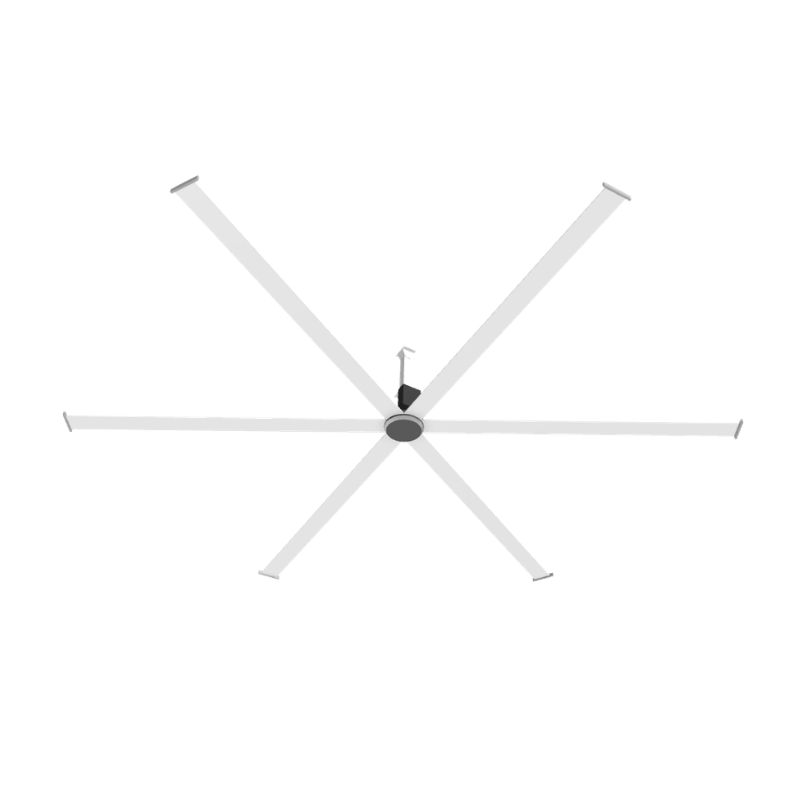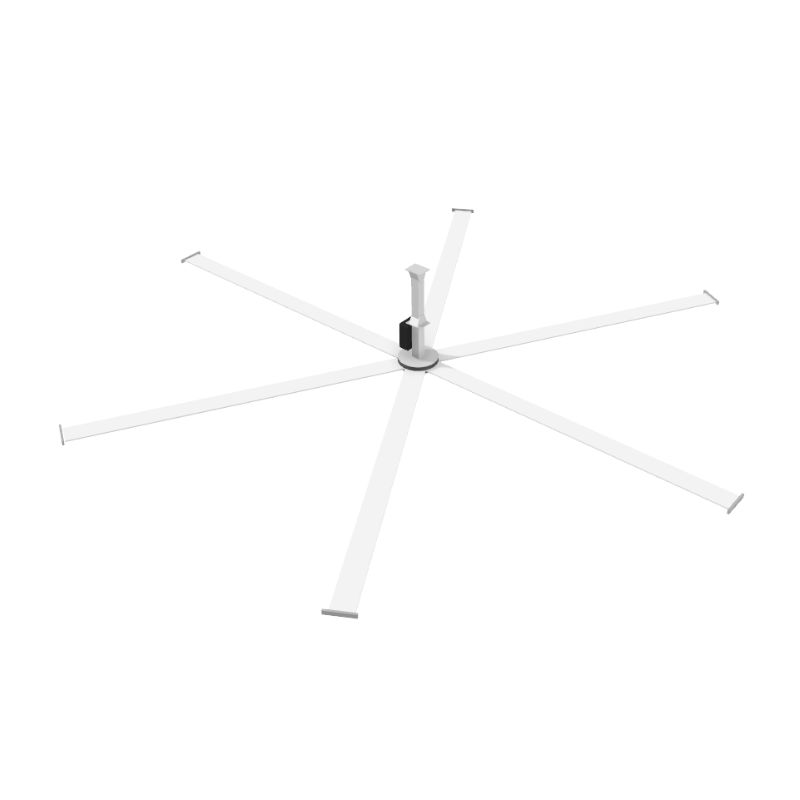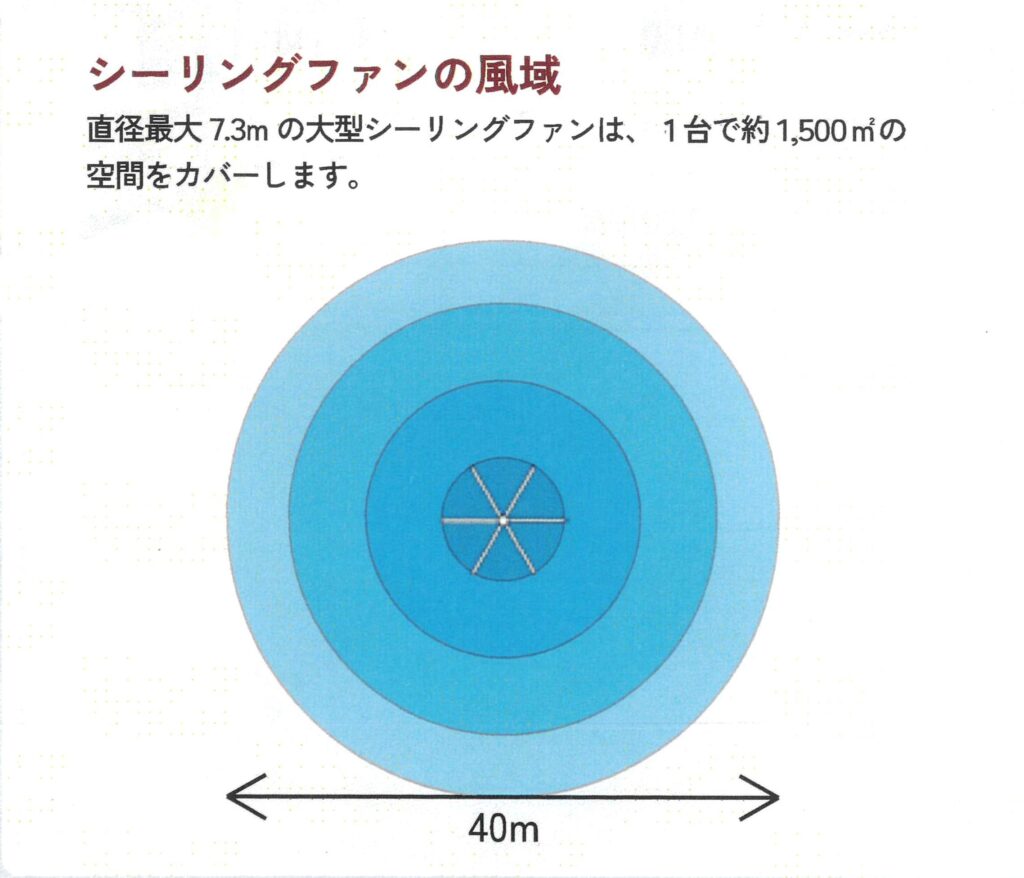 マテハン大型天井ファンは、工場・倉庫・体育館などの大空間に最適な空気循環ソリューションです。最大直径7.3mの大型ファンにより、約1,500㎡の広範囲を1台でカバーし、空気をゆるやかに循環させます。